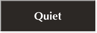 Enjoy peace and quiet with a 4" by 12" sign. Professionally engraved Quiet signs are ready for quick shipping.
