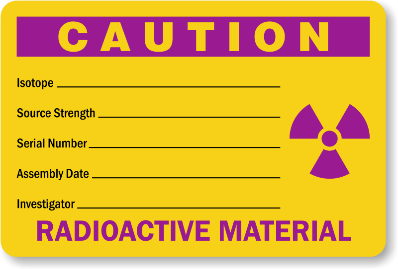 Install this radioactive label in plants and labs to minimize accidental risks.