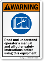 Ensure a safe environment at your workplace. Use this ANSI Warning Sign to inform workers to go through the operator manual and safety instruction before working with the equipment.