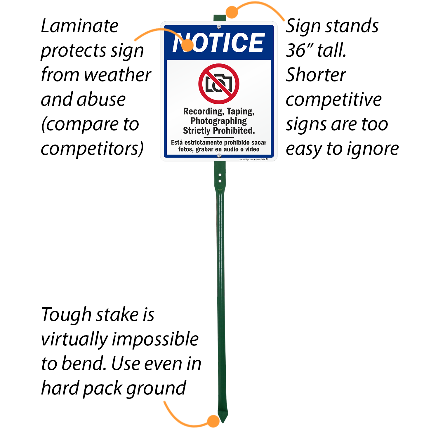 LawnBoss® Sign & Stake Kit: Notice - Recording, Taping, Photographing Strictly Prohibited. K2-5526
