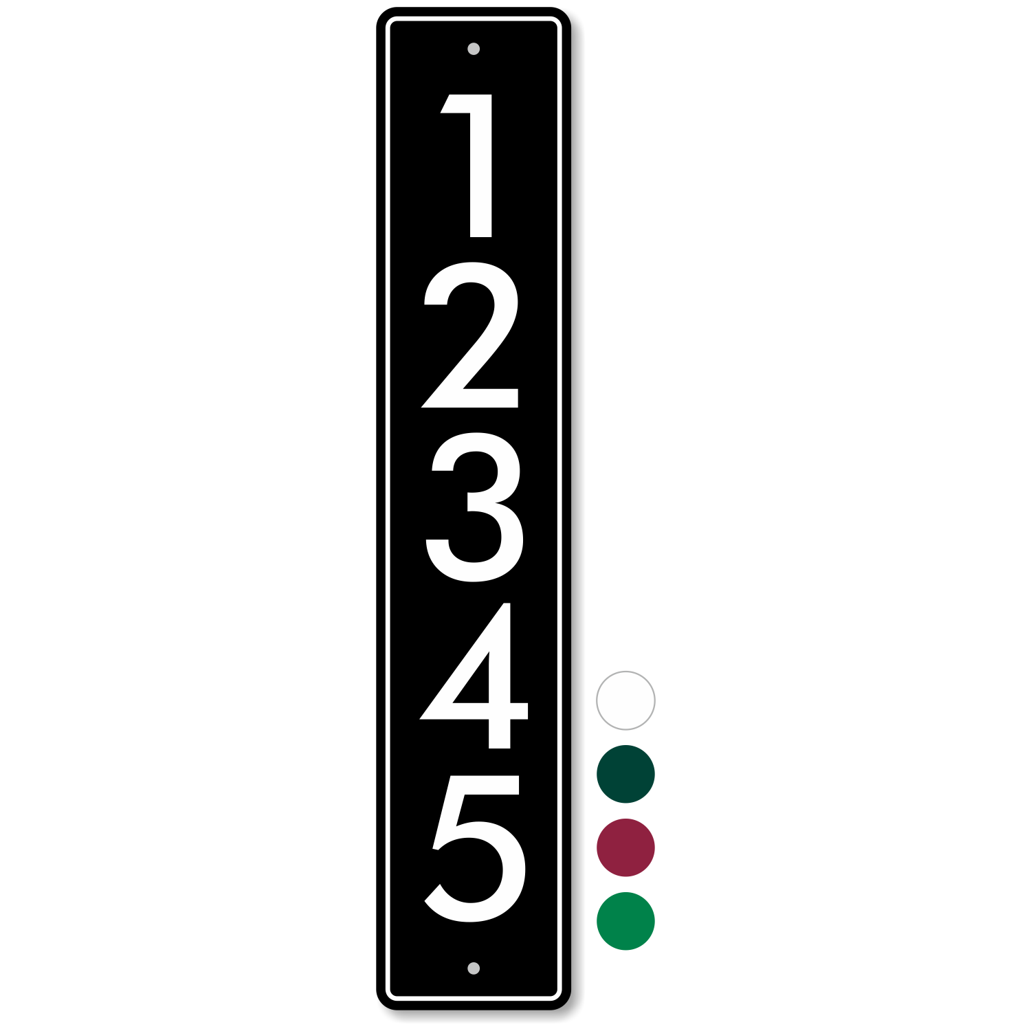 - Customization tool accepts up to 5 numbers. Choose a sign color from Black, Green, Hunter Green, Burgundy, and White.