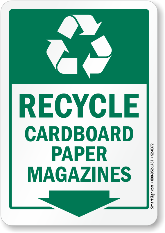 Encourage recycling of cardboards, papers and magazines in your area. Use this recycling sign to mark bins for collecting the recyclable items.