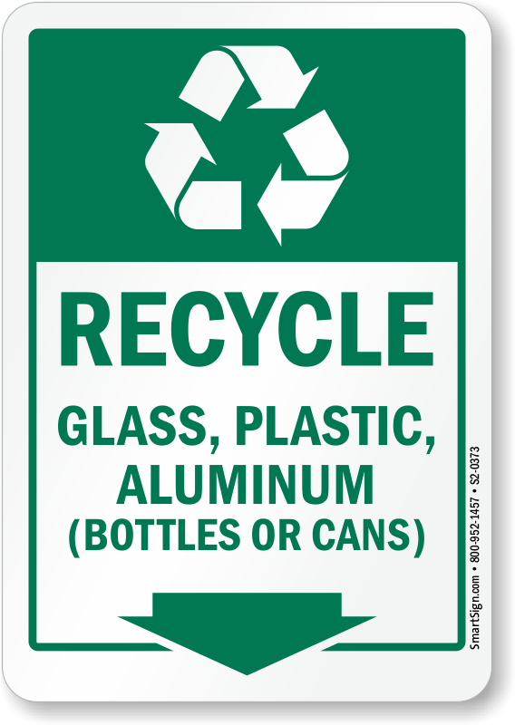 Bottles or cans, give them another chance! Encourage collection of recyclable glass, plastic, and aluminum bottles and cans at one place by using this recycling sign.