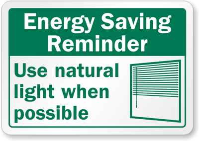 Energy Conservation Label: Energy Saving Reminder, Use Natural Light When Possible (with Graphic) LB-1424
