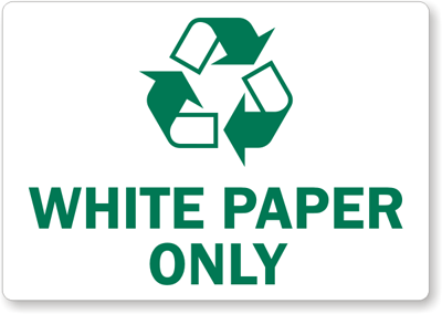 3.5" x 5" Laminated Vinyl Label: (Recycle symbol) White Paper Only L-0563-XV