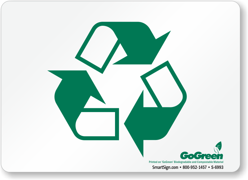 Recycling saves the planet's resources! Make sure that everyone knows how to dispose of their waste properly at your facility. Graphic makes sign easily readable.