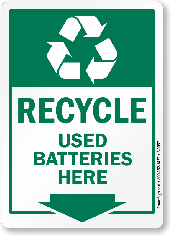 Since batteries have residual mercury inside them, it's a matter of public health to dispose of them responsibly. Use this sign to clearly indicate where hazardous old batteries can be left for proper collection.