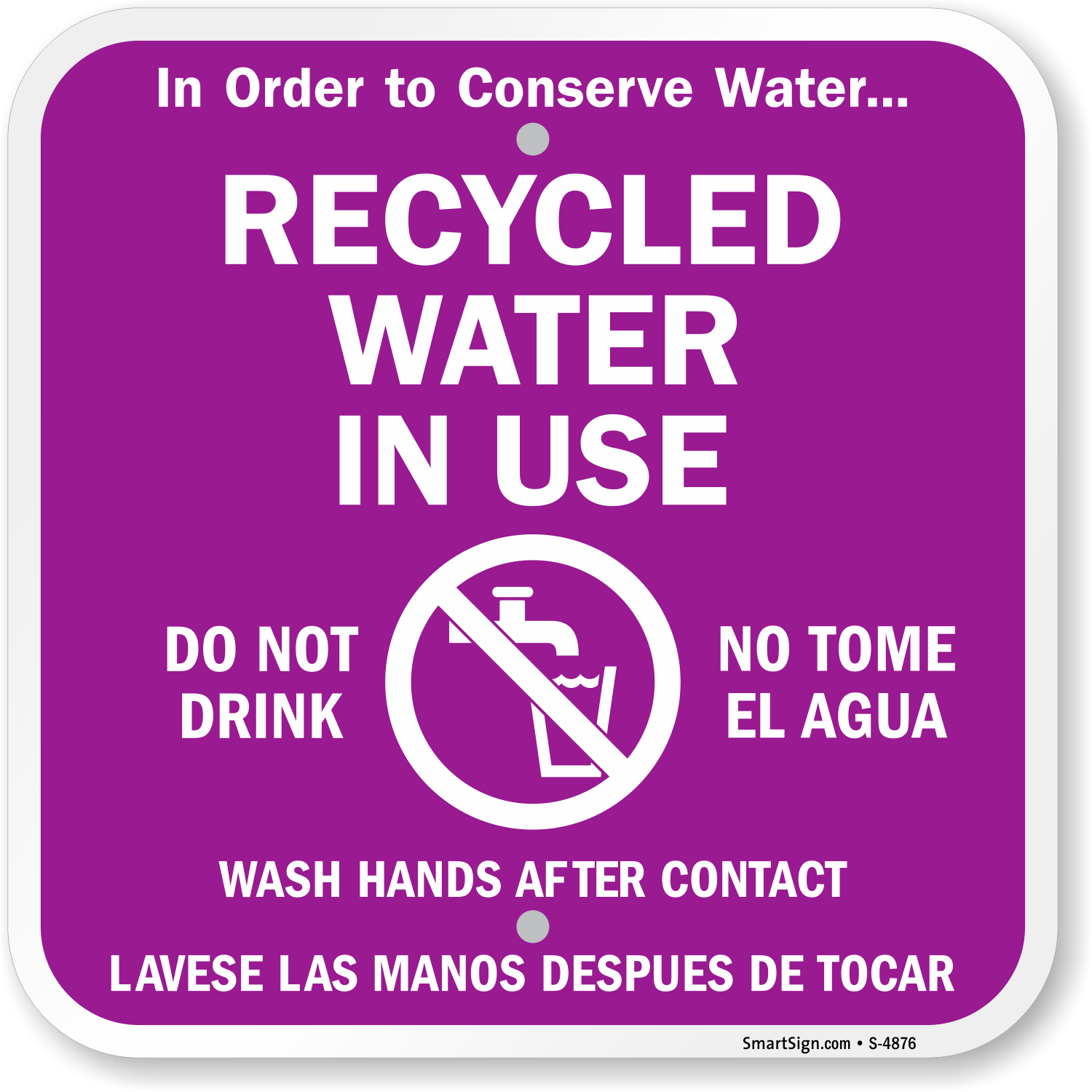 Recycled Water Sign: Recycled Water in Use Do Not Drink (with graphic) S-4876