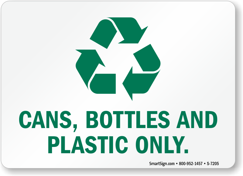 Recycle Sign: Cans, Bottles And Plastic Only (with Graphic) S-7205
