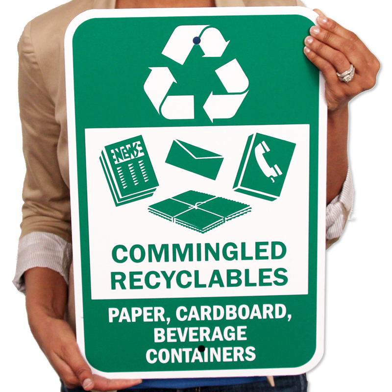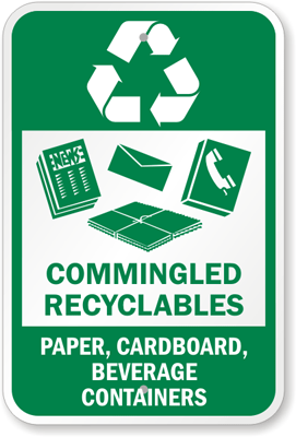 Recycling Sign: Commingled Recyclables - Paper, Cardboard, Beverage Containers (with Graphic) K-7695