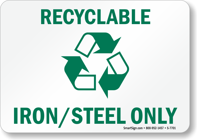 Recycling Sign: Recyclable Iron/Steel Only (with Graphic) S-7701