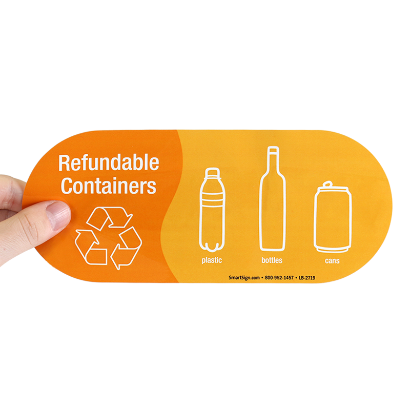 Refundable containers like plastic, bottles, and cans should be collected in the same place. This easy-to-apply, colorful label gets everybody's attention to the collection area/bin.