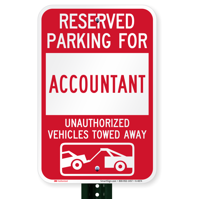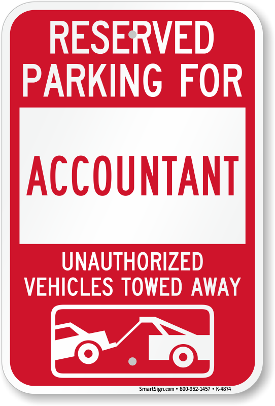 Novelty Parking Lot Sign: Reserved Parking For Accountant Unauthorized Vehicles Towed Away (With Tow Away Graphic) K-4874 Learn More...