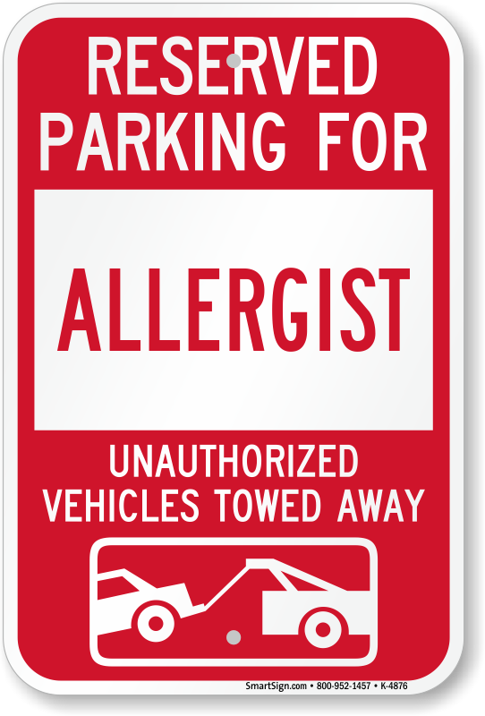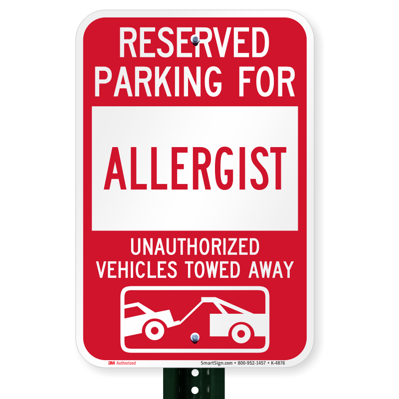 Parking Lot Sign: Reserved Parking For Allergist Unauthorized Vehicles Towed Away (With Tow Away Graphic) K-4876 Learn More...