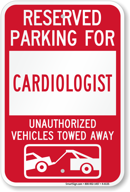 Doctors Parking Sign: Reserved Parking For Cardiologist Unauthorized Vehicles Towed Away (With Tow Away Graphic) K-6135 Learn More...