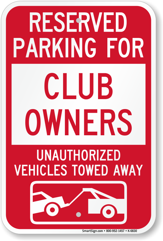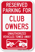 Parking Lot Sign: Reserved Parking For Club Owners Unauthorized Vehicles Towed Away (With Tow Away Graphic) K-6830 Learn More...