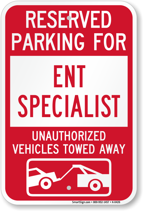 Parking Lot Sign: Reserved Parking For ENT Specialist Unauthorized Vehicles Towed Away (With Tow Away Graphic) K-0426 Learn More...