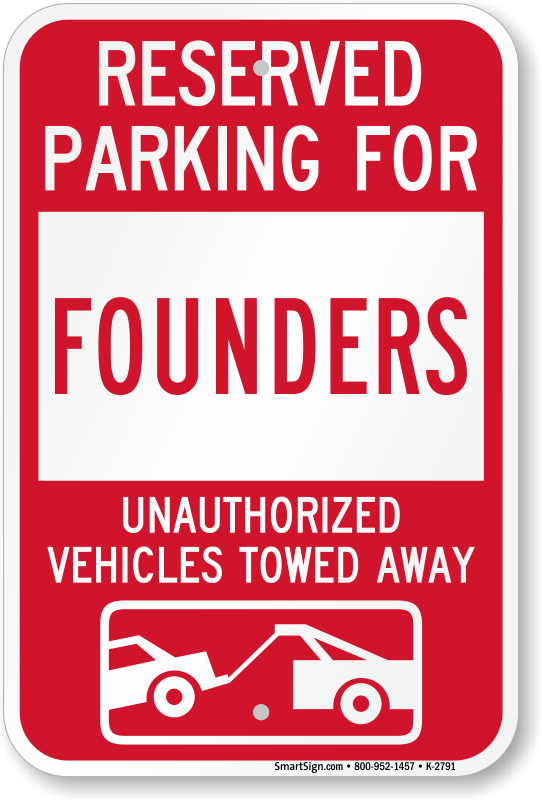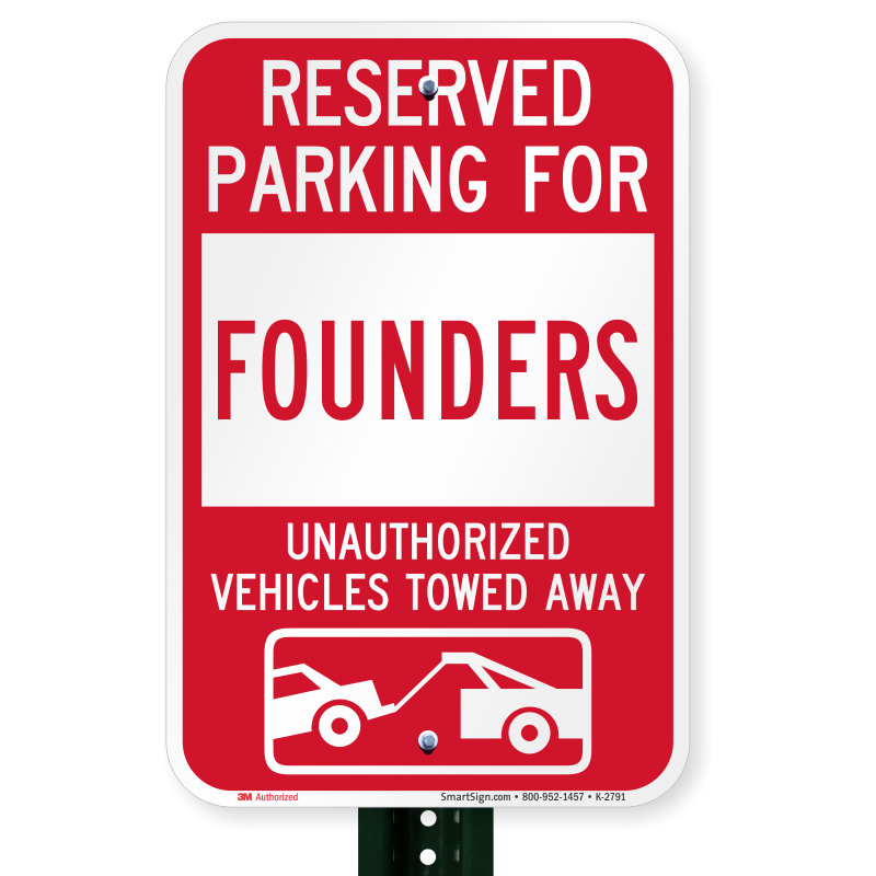 Novelty Parking Lot Sign: Reserved Parking For Founders Unauthorized Vehicles Towed Away (With Tow Away Graphic) K-2791 Learn More...