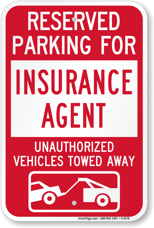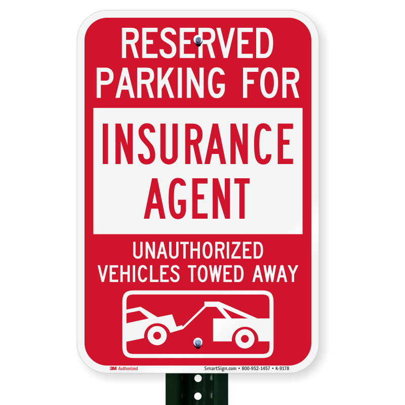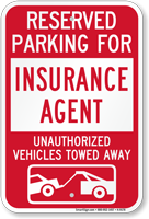 Parking Lot Sign: Reserved Parking For Insurance Agent Unauthorized Vehicles Towed Away (With Tow Away Graphic) K-9178 Learn More...