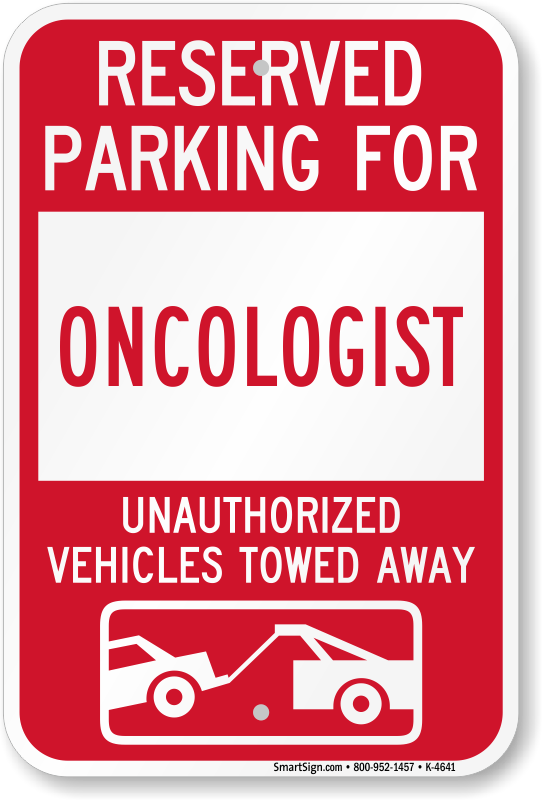 Doctors Parking Sign: Reserved Parking For Oncologist Unauthorized Vehicles Towed Away (With Tow Away Graphic) K-4641 Learn More...