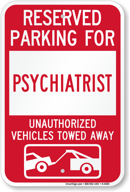 Parking Lot Sign: Reserved Parking For Psychiatrist Unauthorized Vehicles Towed Away (With Tow Away Graphic) K-4659 Learn More...