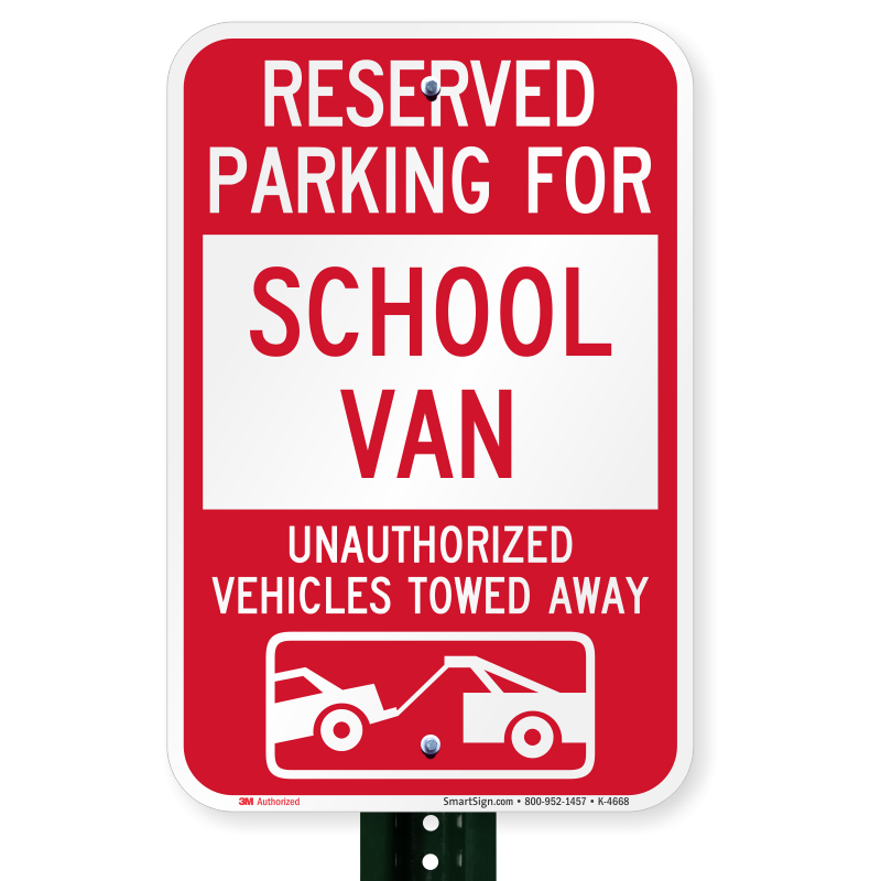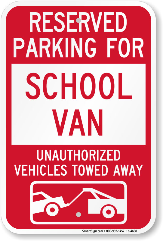Parking Lot Sign: Reserved Parking For School Van Unauthorized Vehicles Towed Away (With Tow Away Graphic) K-4668 Learn More...