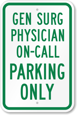 Reserved Parking Sign: Gen Surg Physician On - Call Parking Only K-5614 Learn More...