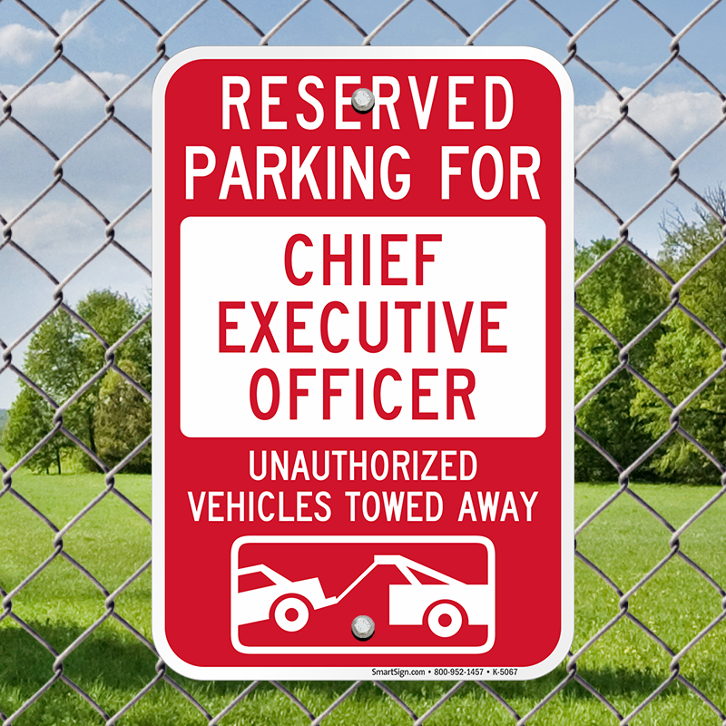 Tow Away Sign: Reserved Parking For Chief Executive Officer : Unauthorized Vehicles Towed Away K-5067 Learn More...