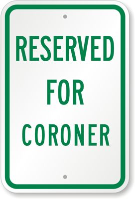 Reserved Parking Sign: RESERVED FOR CORONER K-5017 Learn More...