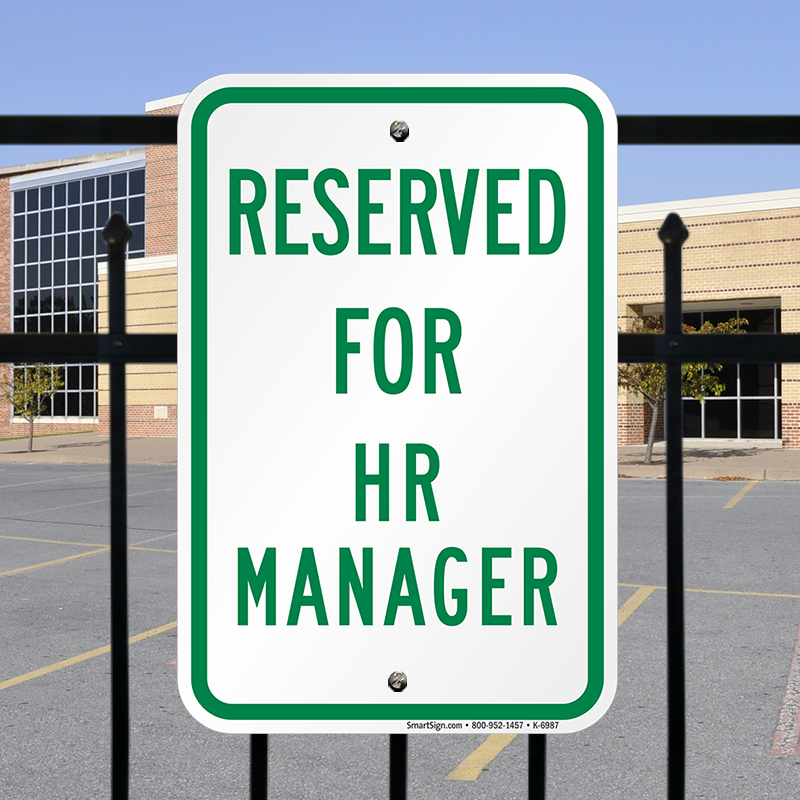 Reserved Parking Sign: Reserved For HR Manager K-6987