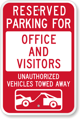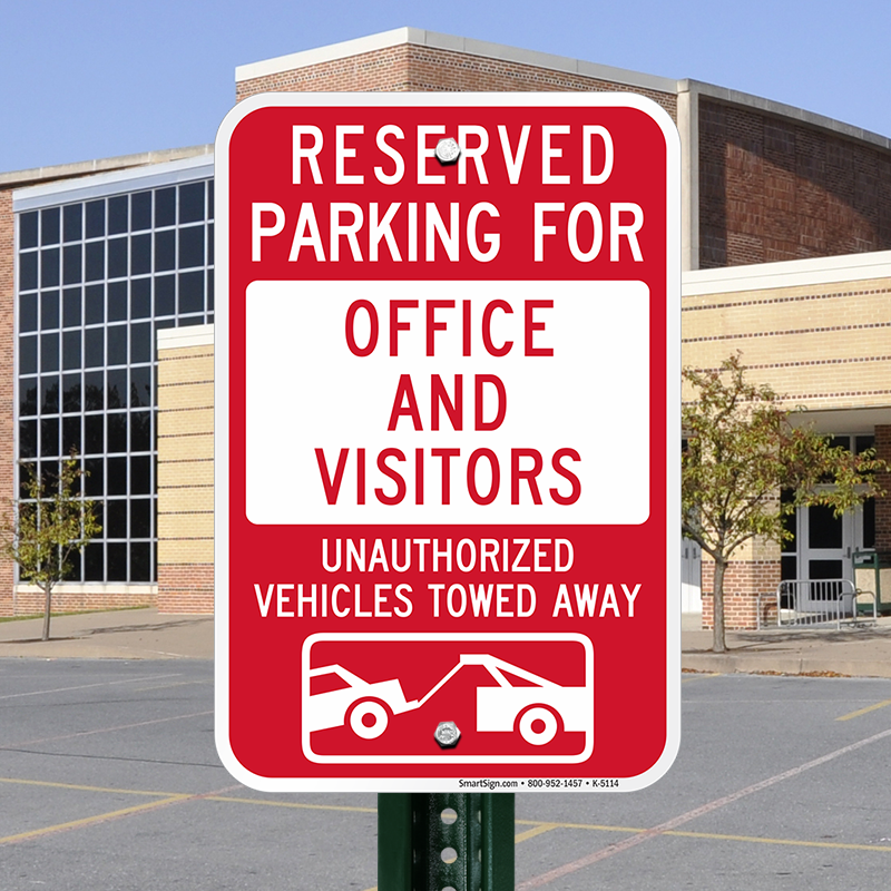 Tow Away Sign: Reserved Parking For Office And Visitors : Unauthorized Vehicles Towed Away K-5114 Learn More...