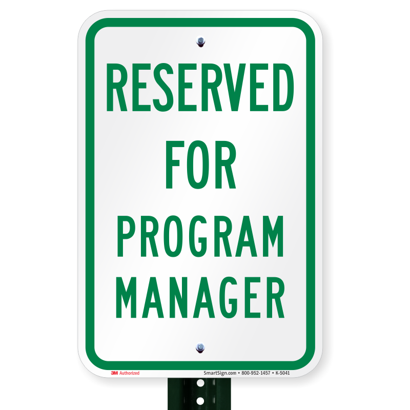Reserved Parking Sign: Reserved For Program Manager K-5041 Learn More...