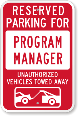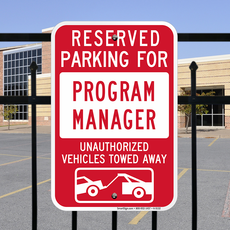 Tow Away Sign: Reserved Parking For Program Manager : Unauthorized Vehicles Towed Away K-5132 Learn More...