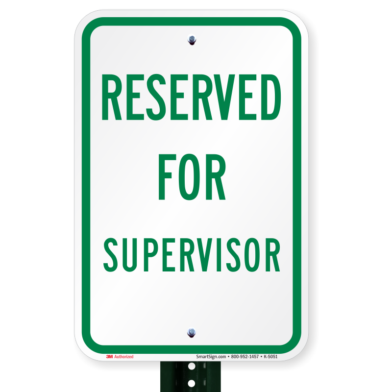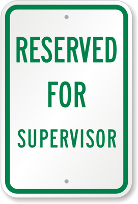 Reserved Parking Sign: RESERVED FOR SUPERVISOR Learn More...