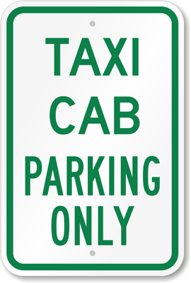 Reserved Parking Sign: TAXI CAB PARKING ONLY Learn More...