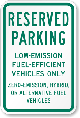 Parking Sign: Reserved Parking Low-Emission Fuel-Efficient Vehicles Only K-4263 Learn More...