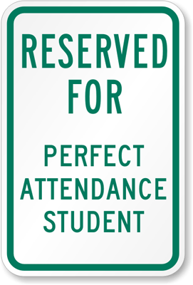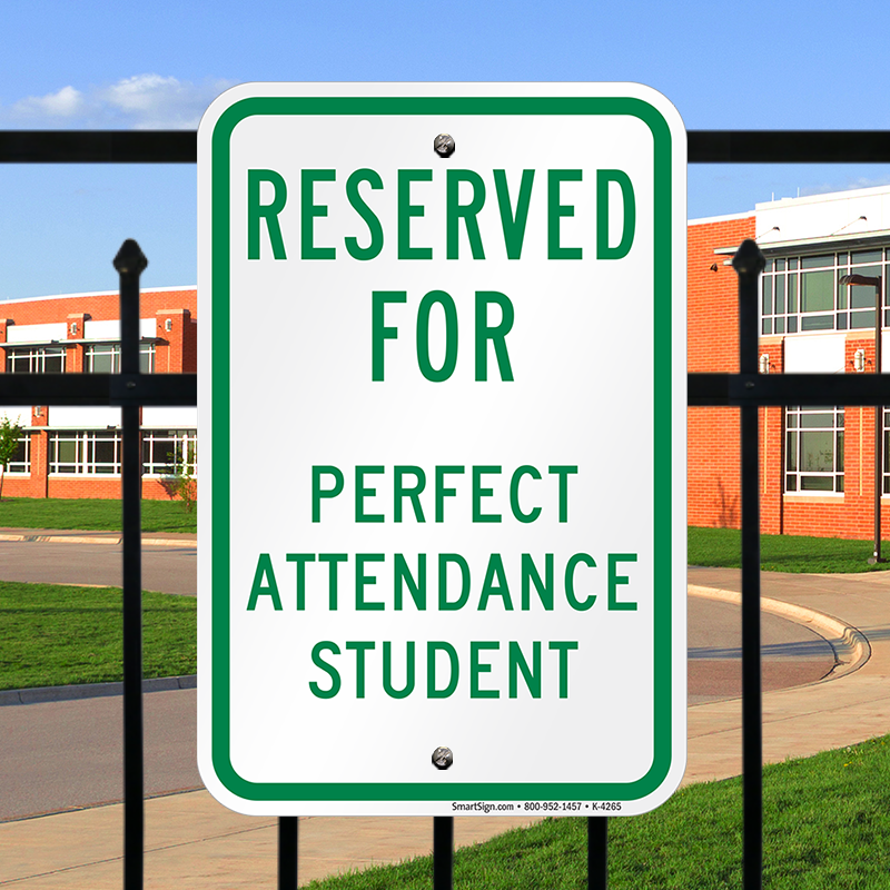 School Parking Sign: Reserved For Perfect Attendance Student K-4265 Learn More...