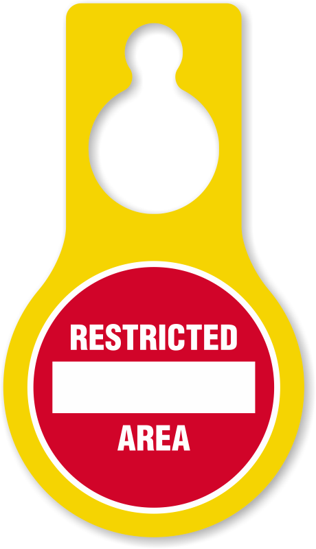 Pear Shaped Plastic Door Hang Tag: Restricted Area (with Symbol) TG-1439