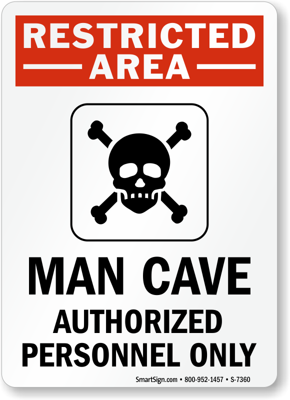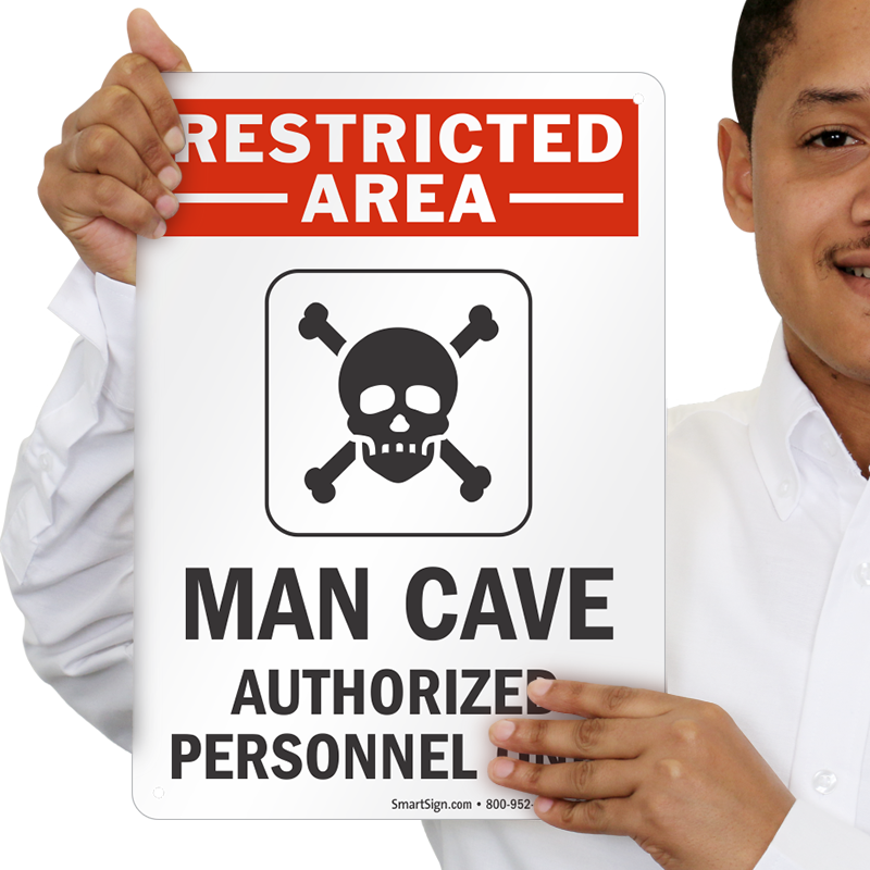 Restricted Area Sign: Man Cave, Authorized Personnel Only With Danger Symbol S-7360
