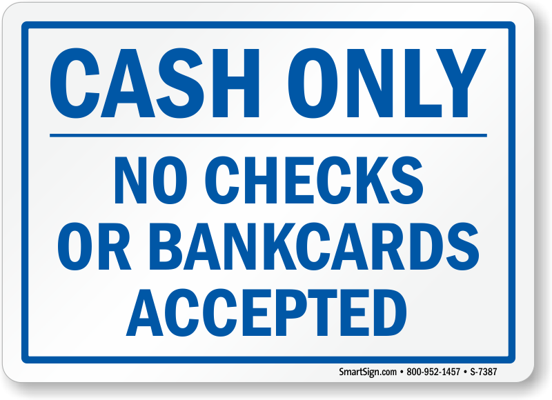 Please Pay Here Sign: Cash Only, No Checks Or Bankcards Accepted S-7387