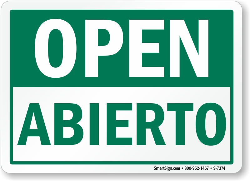 Bilingual Sign: Open, Abierto S-7374