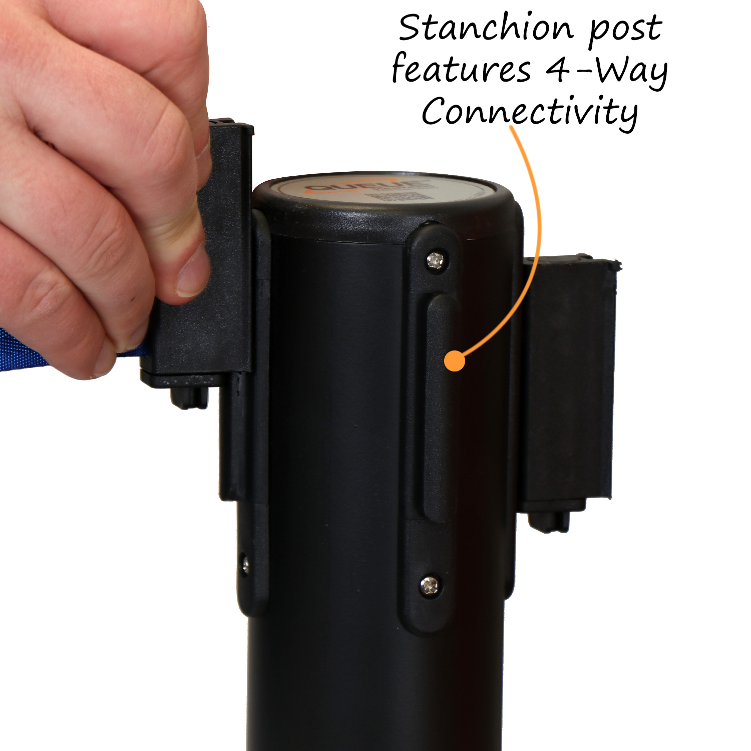 Stanchion posts feature 4 way connectivity.