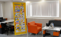 - No tools are needed to set up the banner. Just pull the banner from the stand, secure the support pole, and attach the clamping bar.