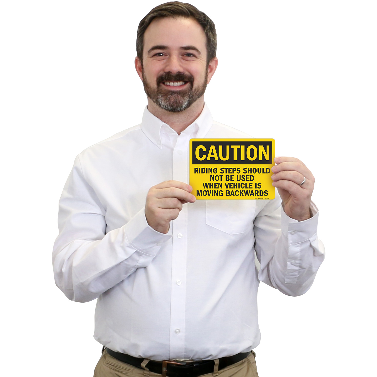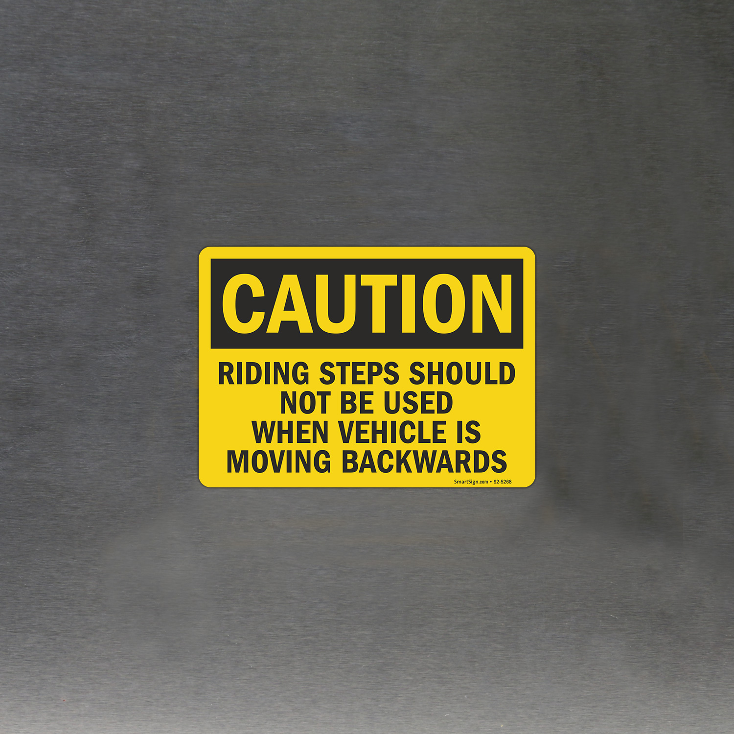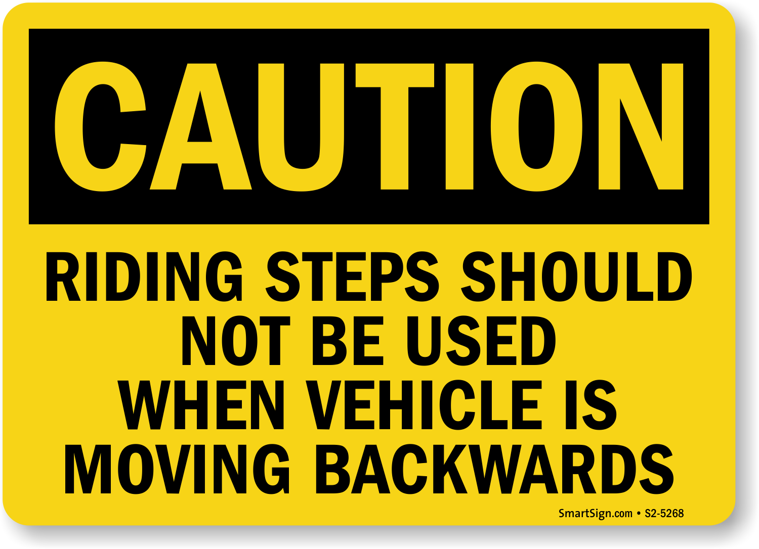 OSHA Caution Sign: Riding Steps Should Not Be Used When Vehicle Is Moving Backwards S2-5268