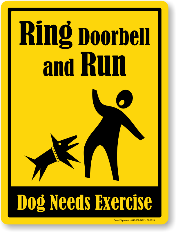 Funny Beware Of Dog Sign: Ring Doorbell and Run, Dog needs Exercise S2-1315