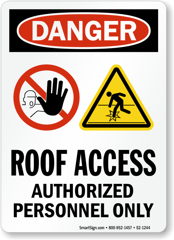 OSHA Danger Sign: Roof Access, Authorized Personnel Only with Graphics