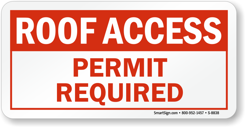 Roof Access Sign: Roof Access Permit Required S-8838 Learn More...