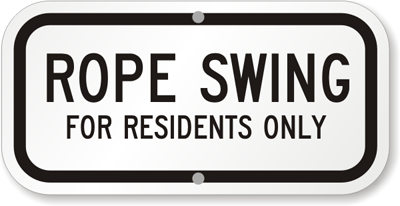 Rope Swing Sign: Rope Swing For Residents Only K-9474 Learn More...