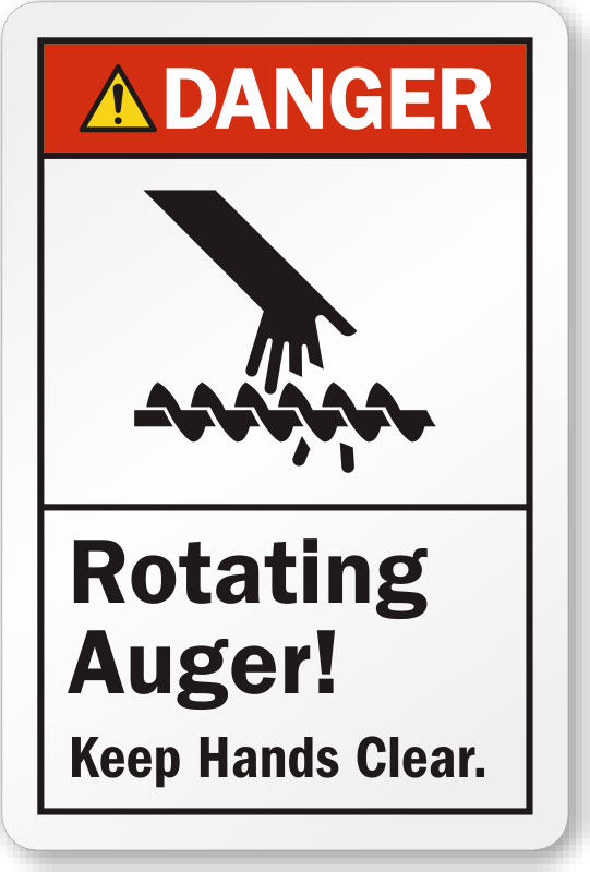 Give a word of caution against rotating auger with this ANSI Danger Label.