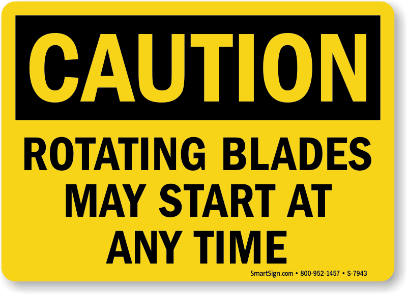 OSHA Caution Sign: Rotating Blades May Start At Any Time S-7943